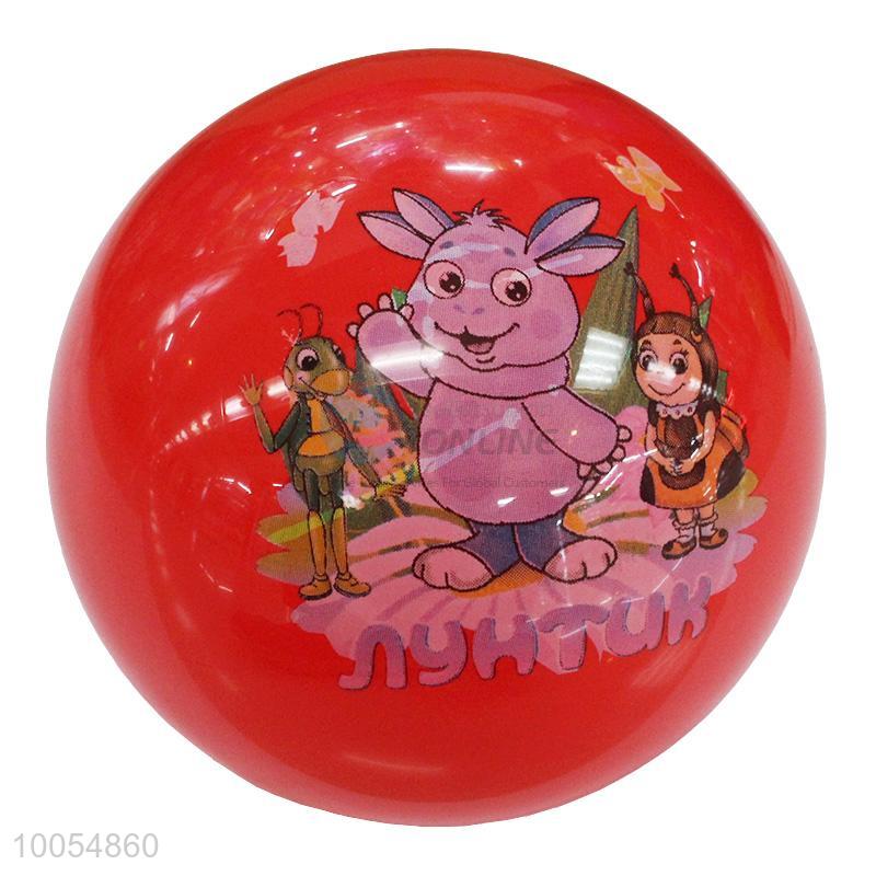 High Quality 9 Inch Red PVC Inflatable Beach Ball with the Pattern of Rabbit&Locusts