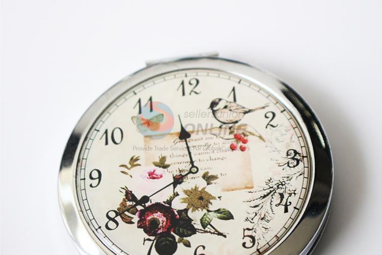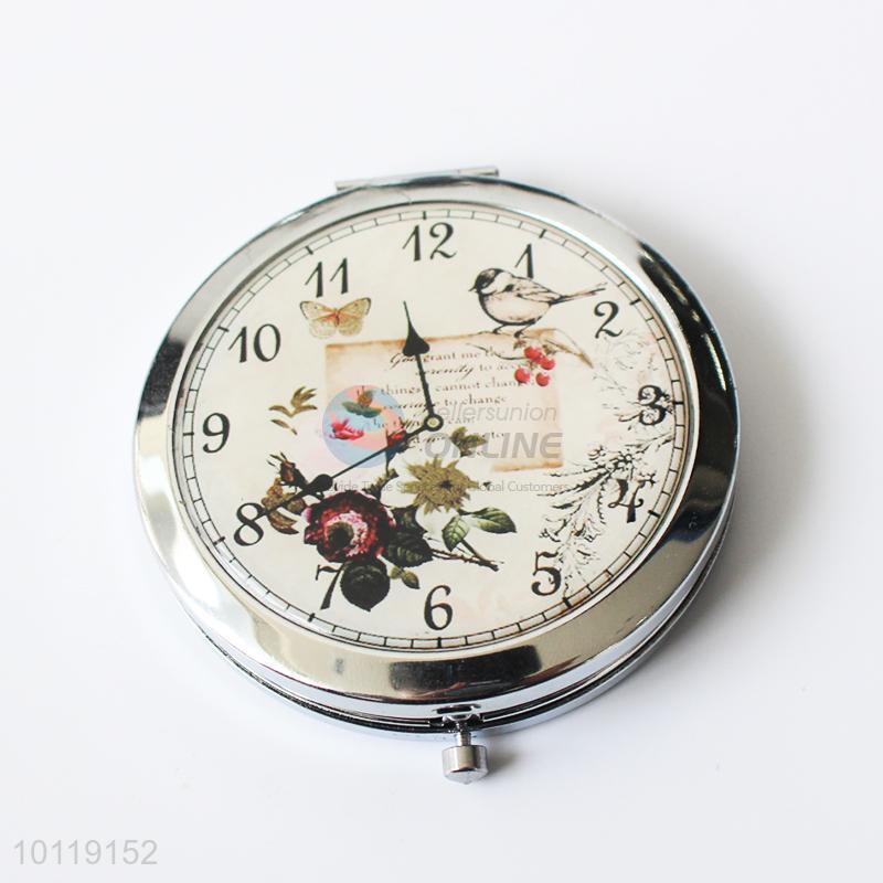Fashionable Clock Printed Round Makeup Mirror/Cosmetic Mirror for Girls