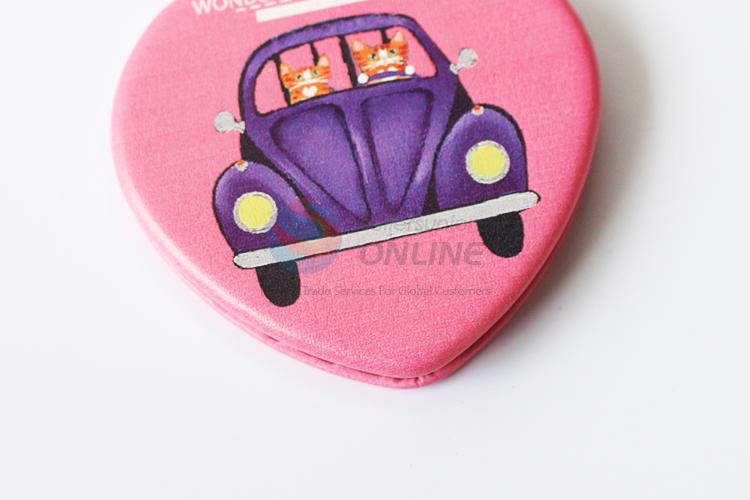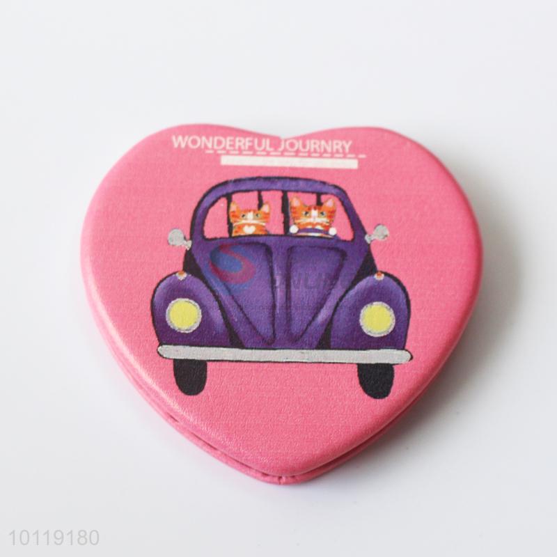 Good Quality Car Printed Heart Shaped Makeup Mirror/Cosmetic Mirror for Girls