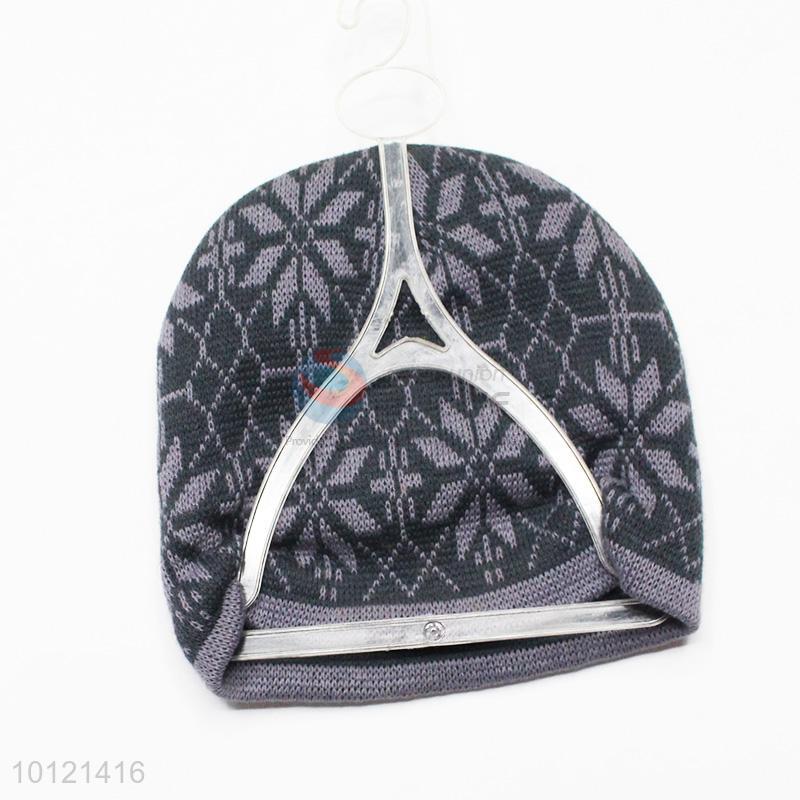 Gray Snowflake Pattern Winter Crochet Knitted Beanie Hats