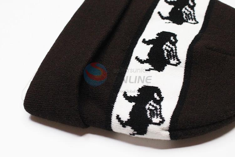 Black Cartoon Animal Pattern Beanie Hats, Knitted Hats