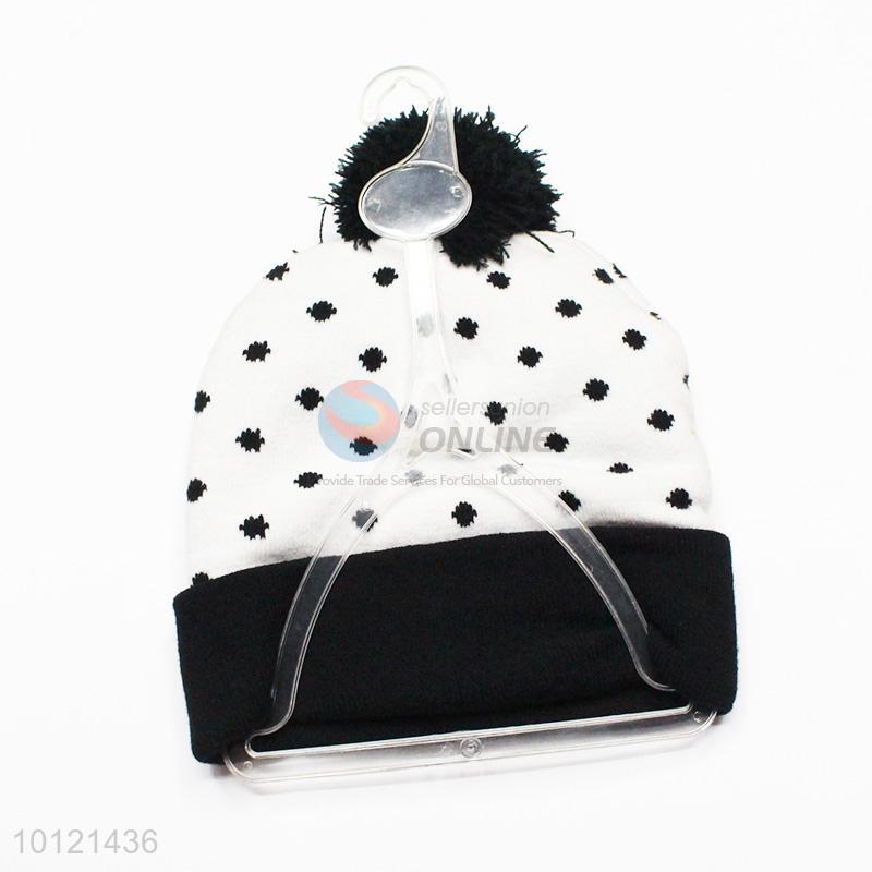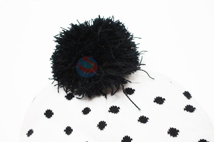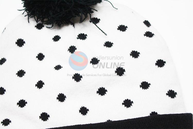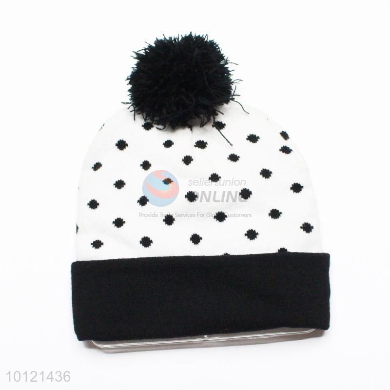 Black Dots Pattern Winter Hat Knitted Hat with Ball Top