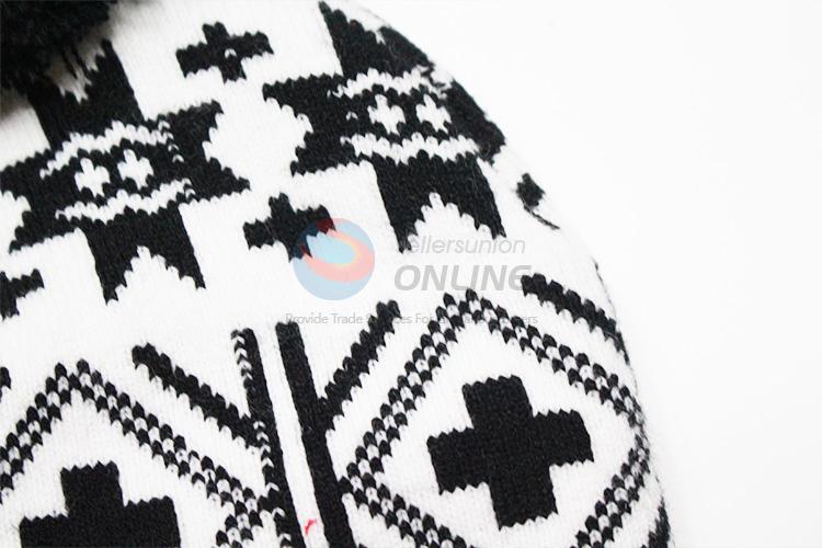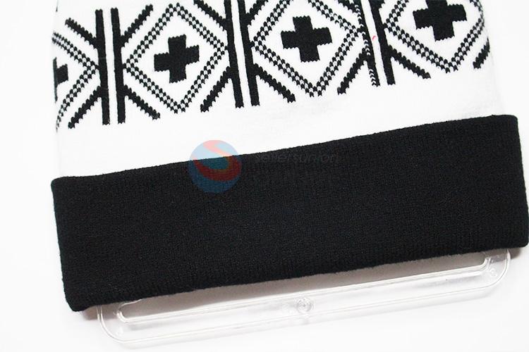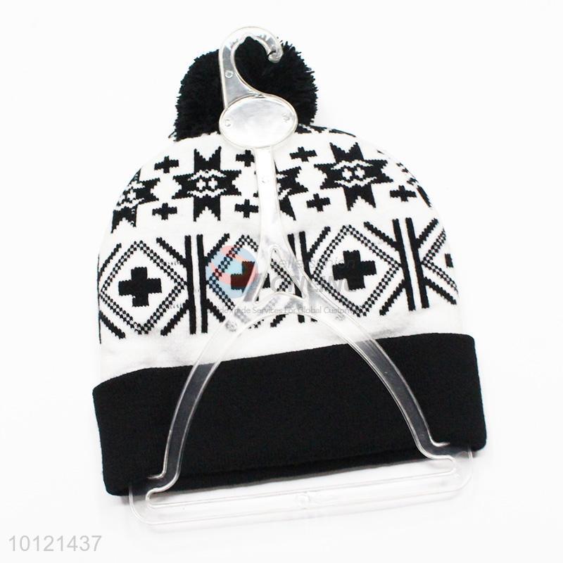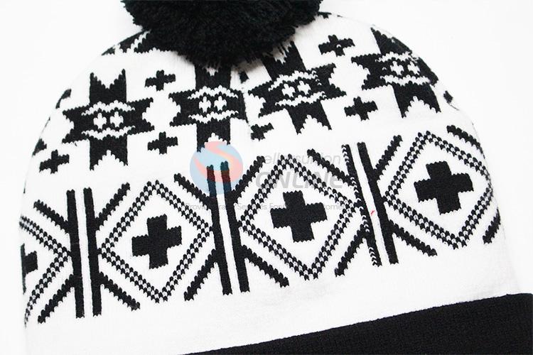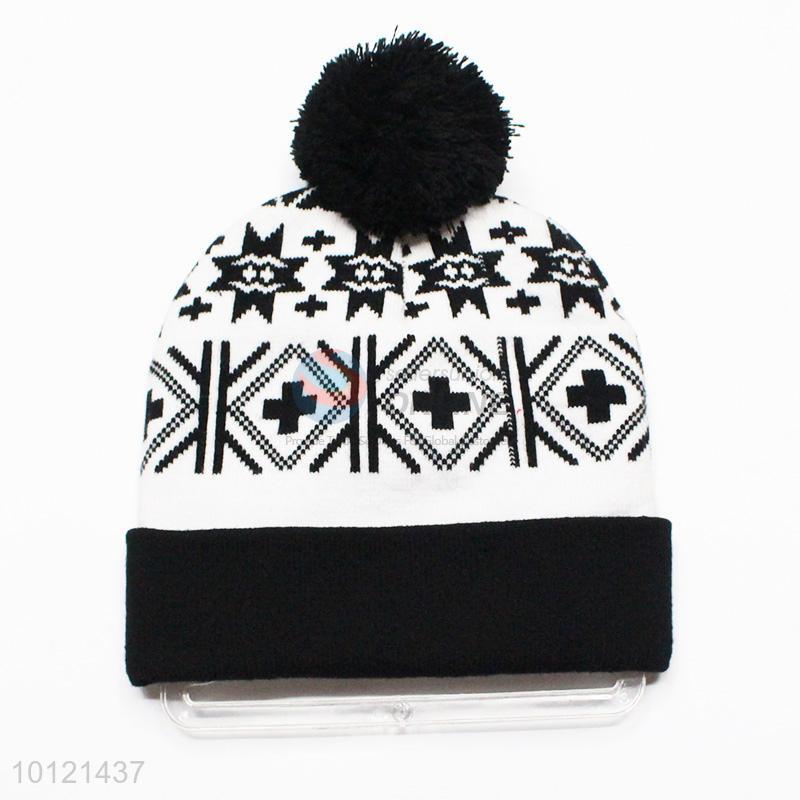 Black Cross Pattern Winter Hat Knitted Hat with Ball Top