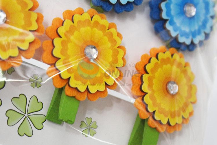 6 Pcs/Set Fashion Flower Shaped Wooden Clip Photo Paper Craft Wooden Clips