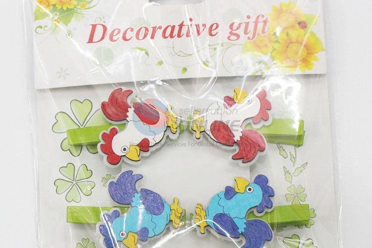 6 Pcs/Set Party Decoration Cartoon Rooster Shaped Wooden Clips for Photo Clips