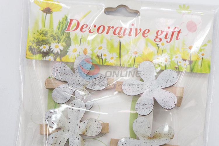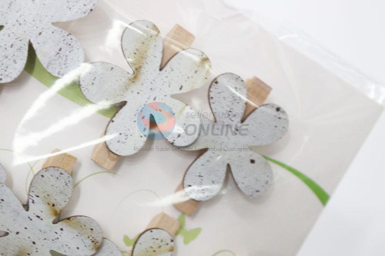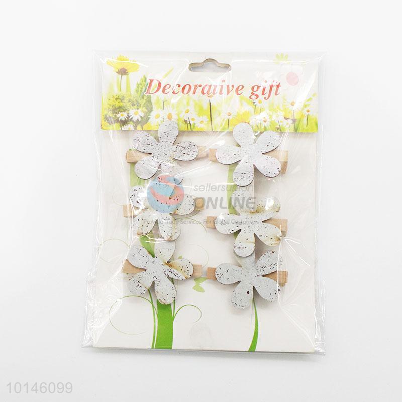 6 Pcs/Set Gray Color Fashion Stationery Mini Flowers Shaped Wooden Clips