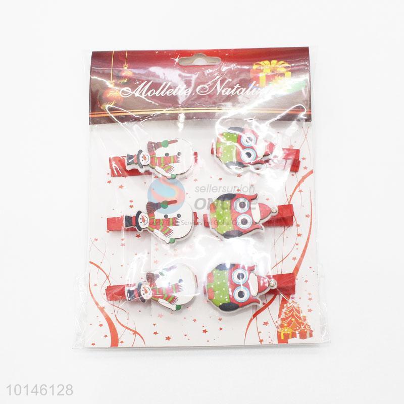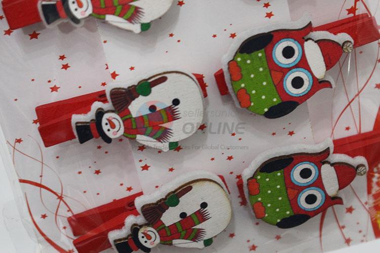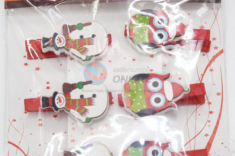 6pcs/set Cute Cartoon Christmas Snowman Shaped Decoration Wooden Clips