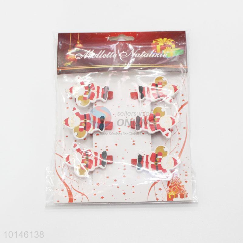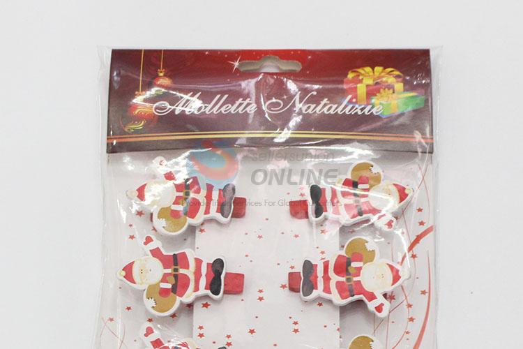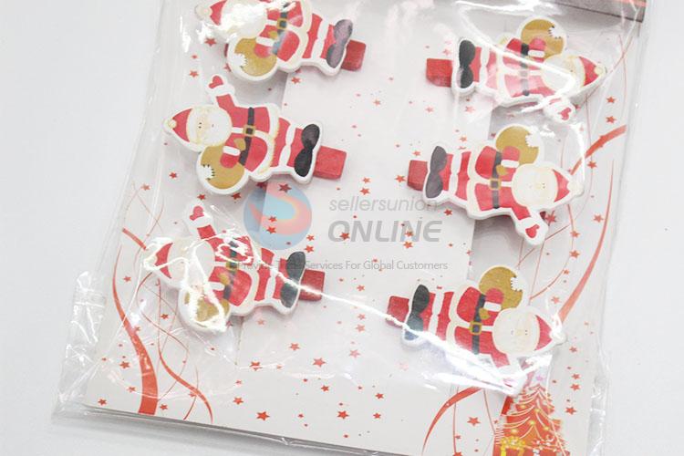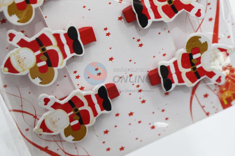 6pcs/set Lovely Cartoon Father Christmas Shaped Decoration Wooden Clips