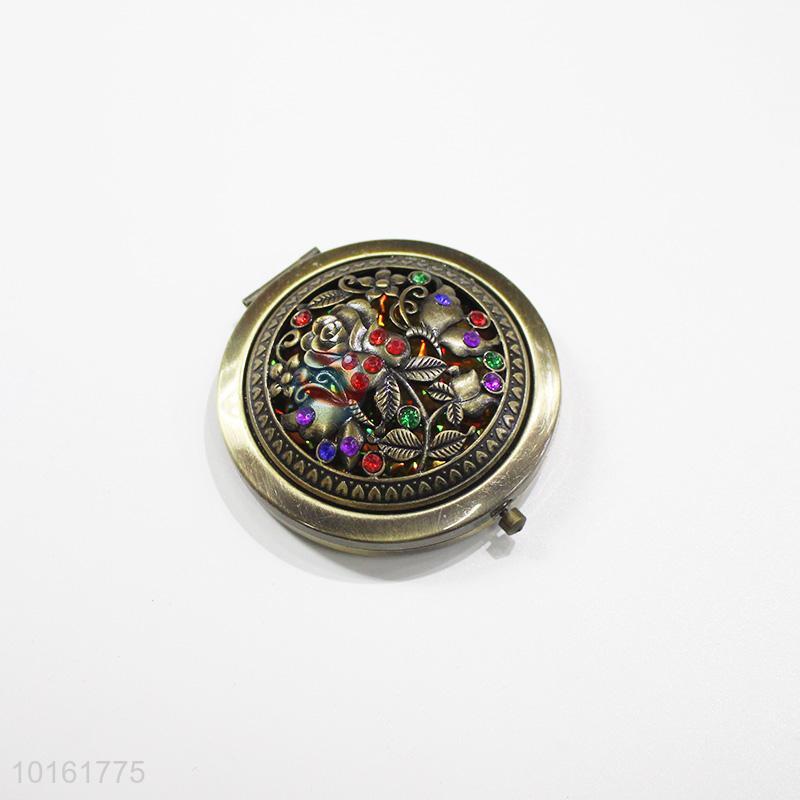 Top quality round hollow alloy mirror with colorful stones