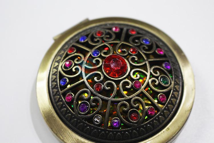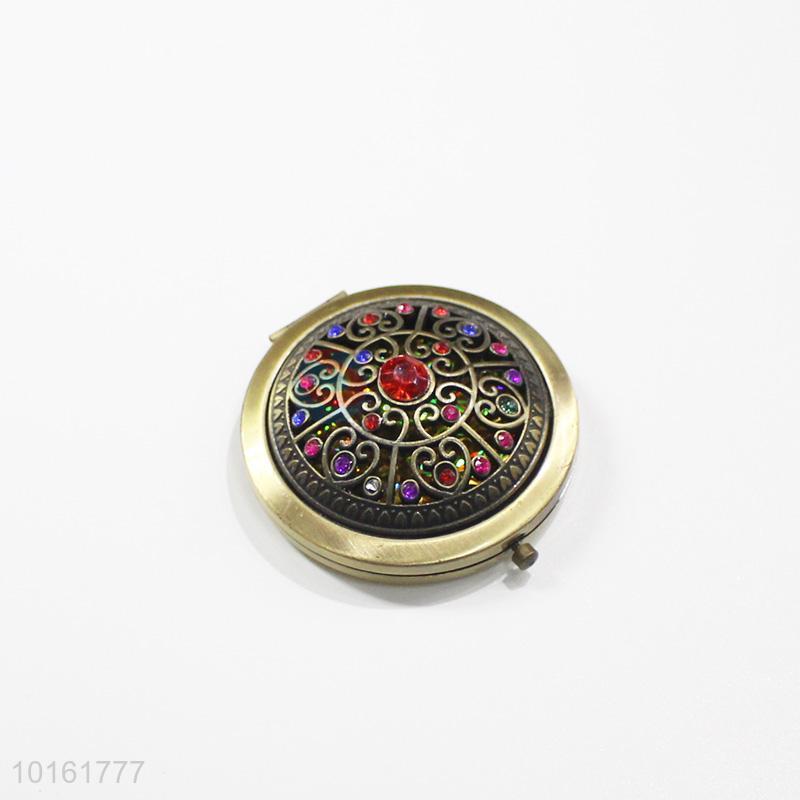 China factory round hollow alloy mirror with colorful stones