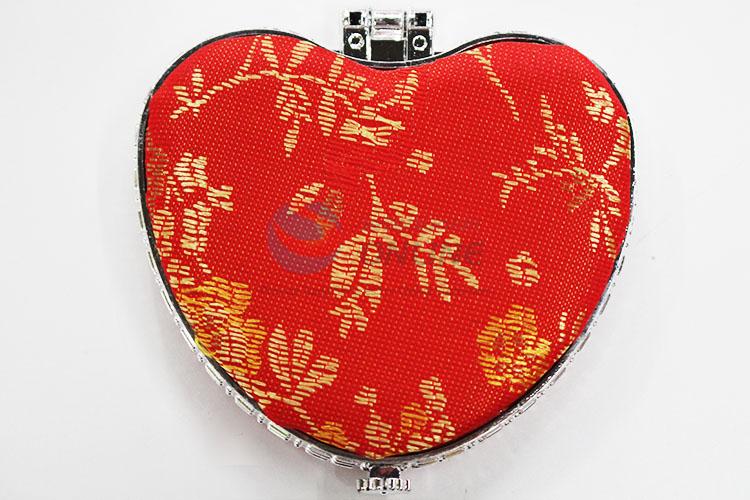Decorative Red Mini Heart-shaped Silk Fabrics Cosmetic Mirror