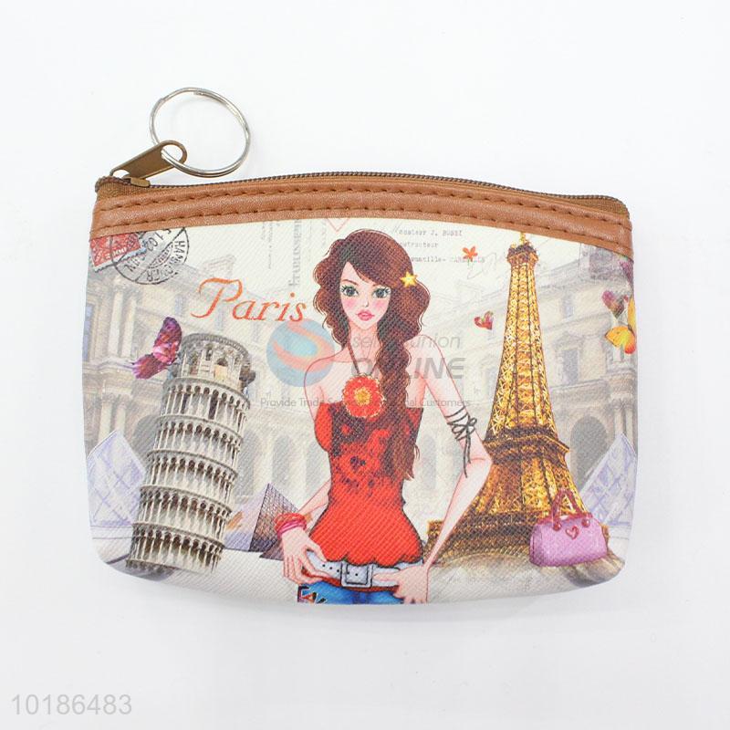 Women Fashion Girl and Buildings Printed Short Wallets Small Wallet Roomy Purse