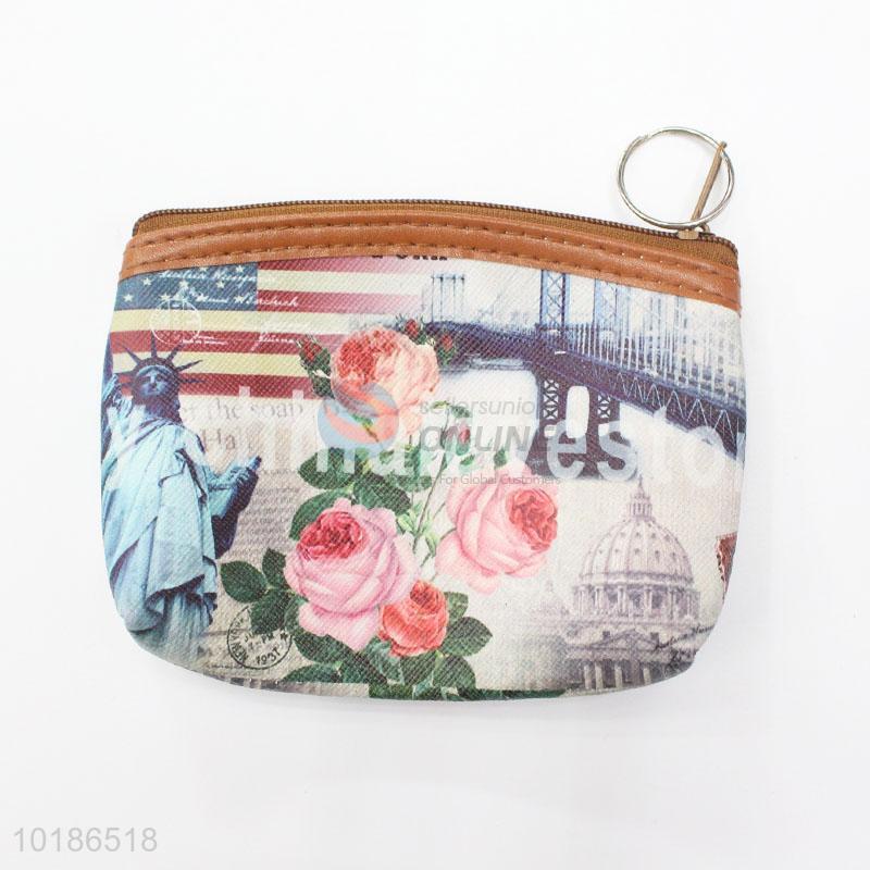 Beautiful Flowers Printed PVC with Lining Coin Purse Wallet Money Bag