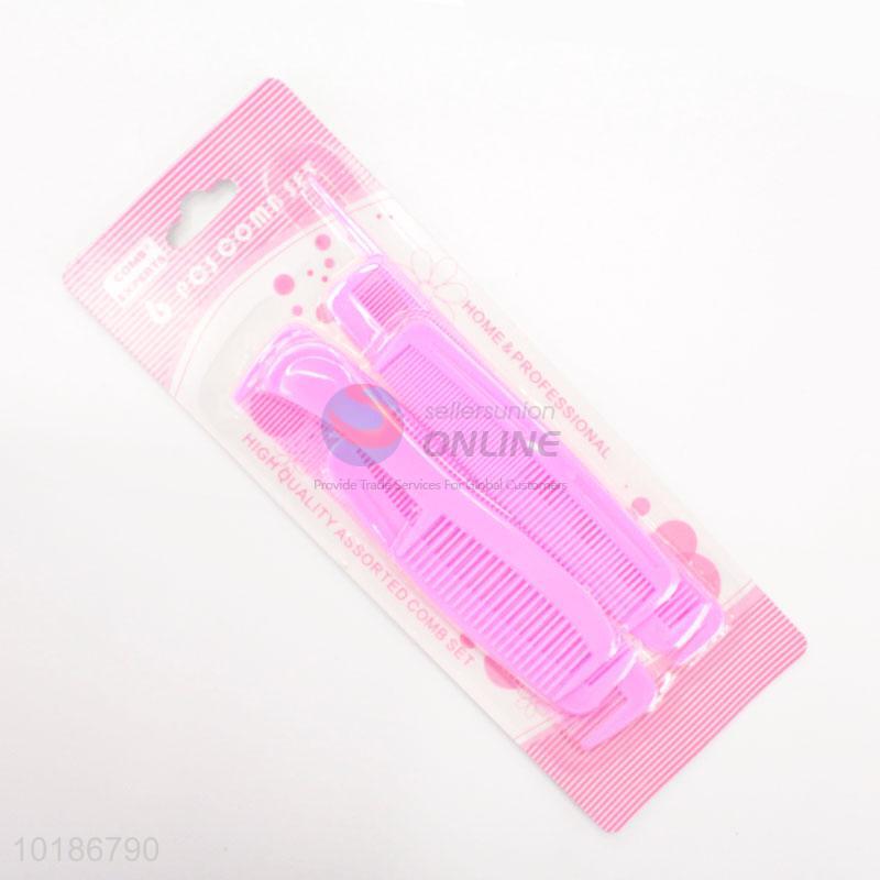 Professional Pink 6 Pieces Utility Plastic Hair Comb Set