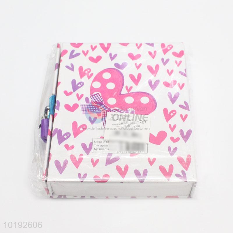Promotional Purple Heart Printed Students Cardboard Cover Notebook with Lock