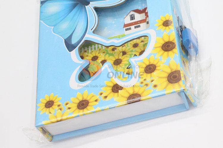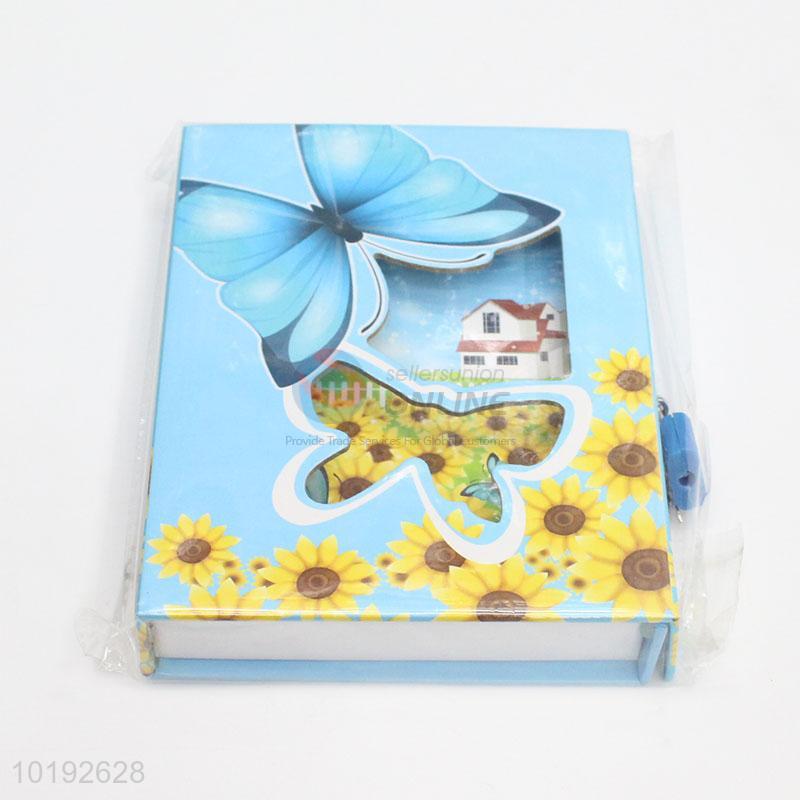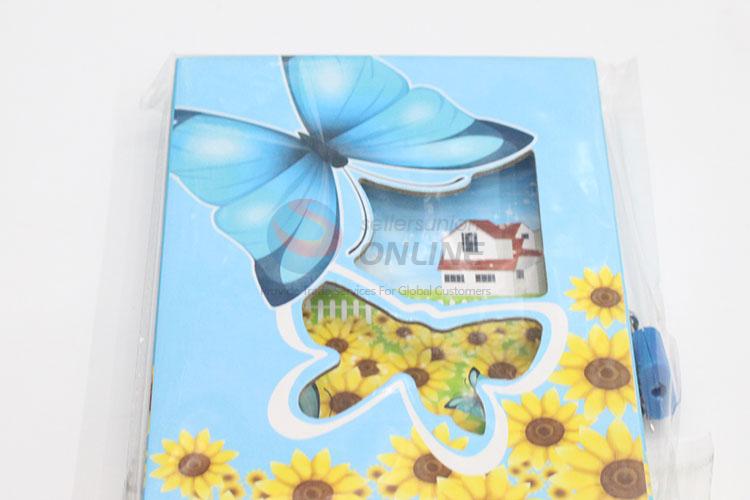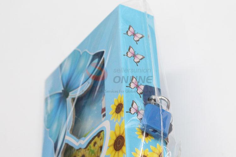 New Student Sky Blue Flower Butterfly Dairy Notebook with Lock