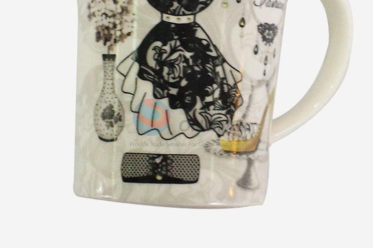 High Quality Dress Pattern White Ceramic Cup Coffee Mug