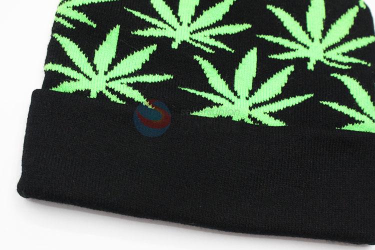 Black maple pattern winter hat/acrylic knitted hat with top ball