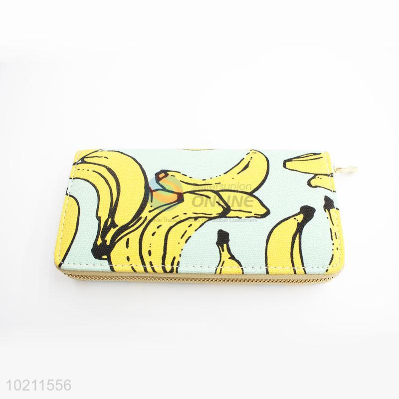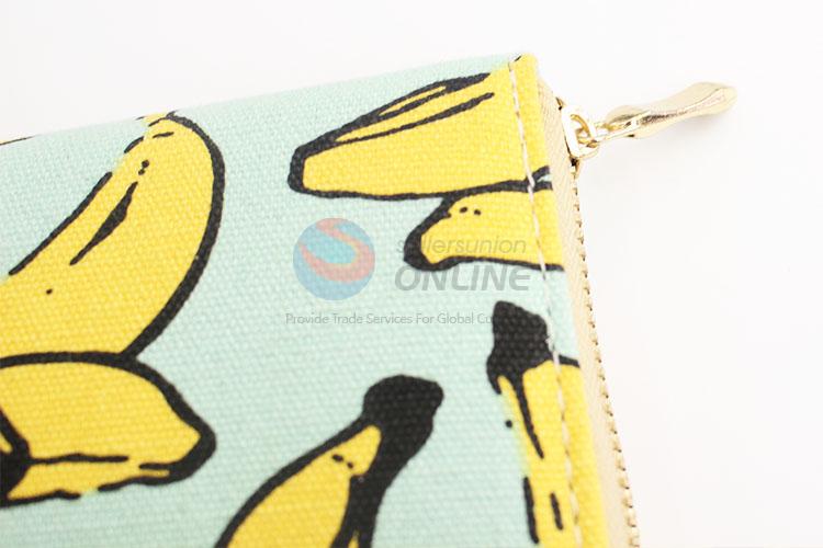 Cute Banana Pattern Canvas Purse&Wallet with Brass Zipper for Sale
