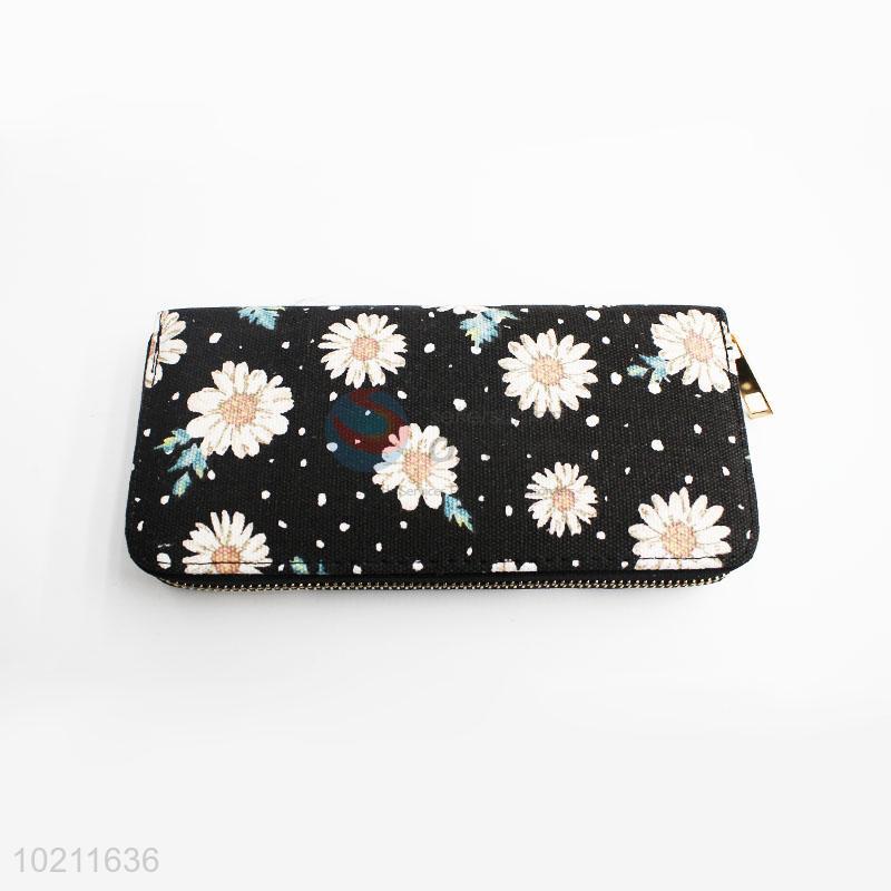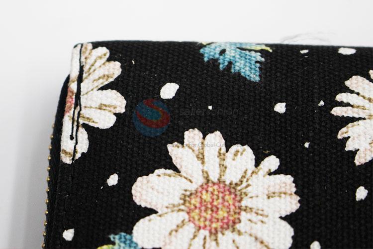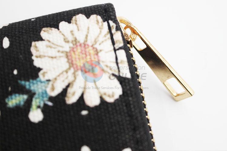 Elegant Flower Pattern Canvas Purse&Wallet with Polyester Zipper for Sale