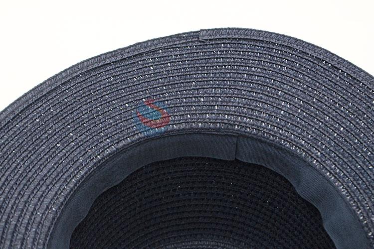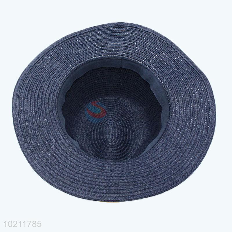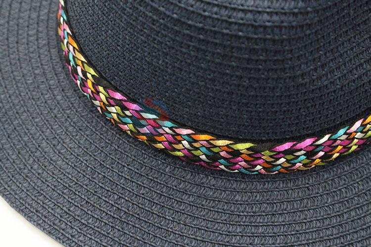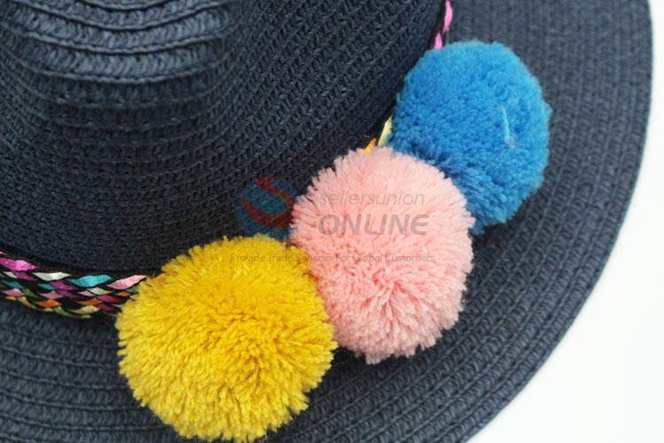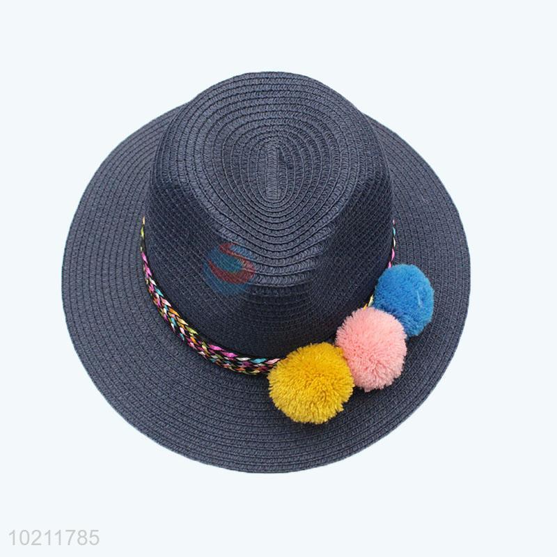 Summer wide brim paper straw hat with fuzzy ball