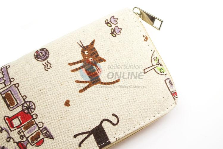 Lovely Cat Pattern Canvas Purse&Wallet with Polyester Zipper for Sale