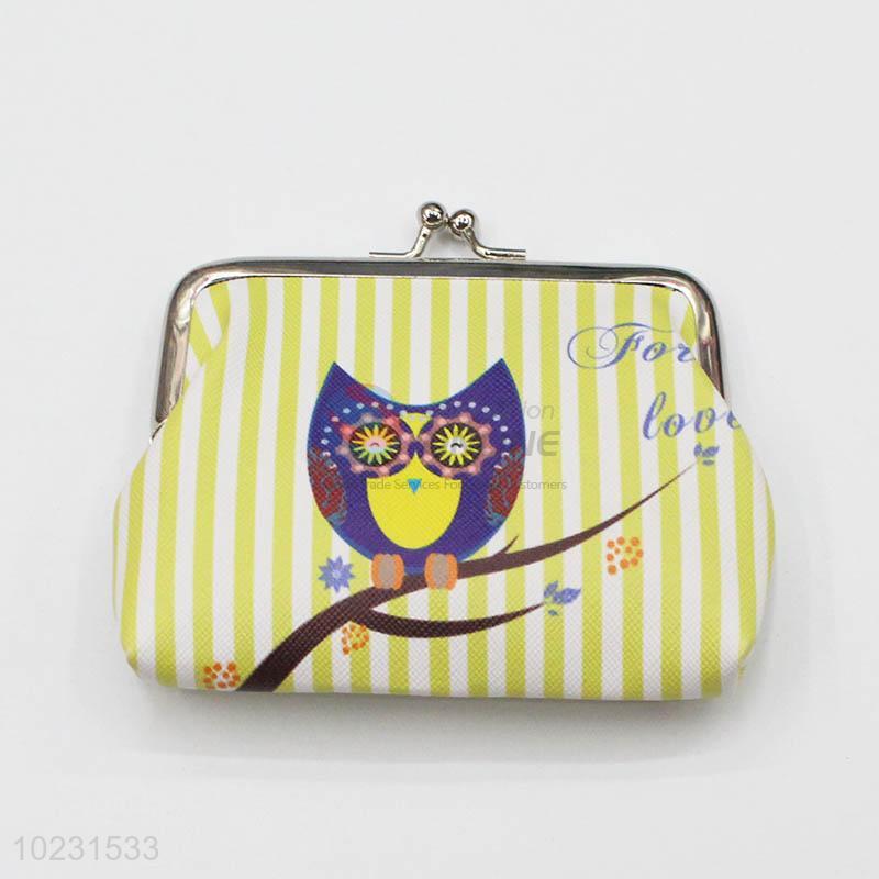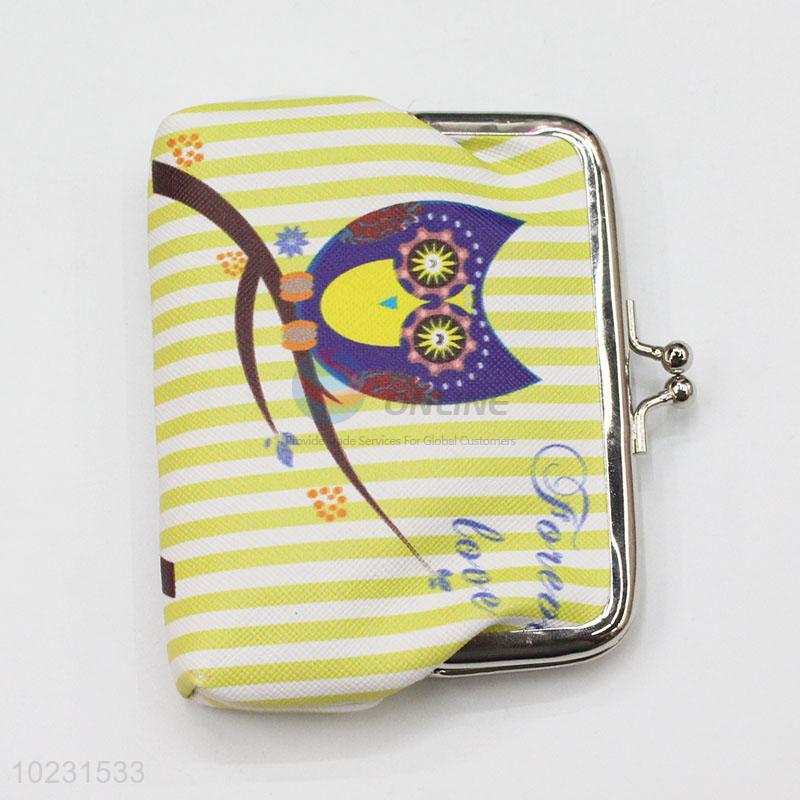 Owl Printed Striped Pattern PVC Coin Purse Wallet