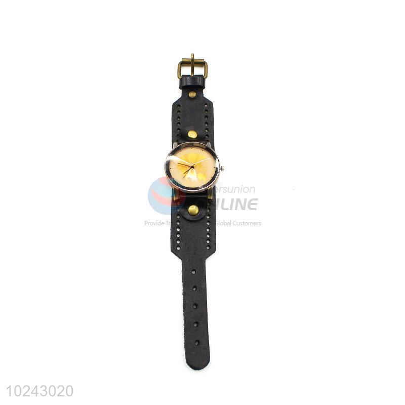 Best Selling Black Wrist Watch with Leathern Watchband for Sale