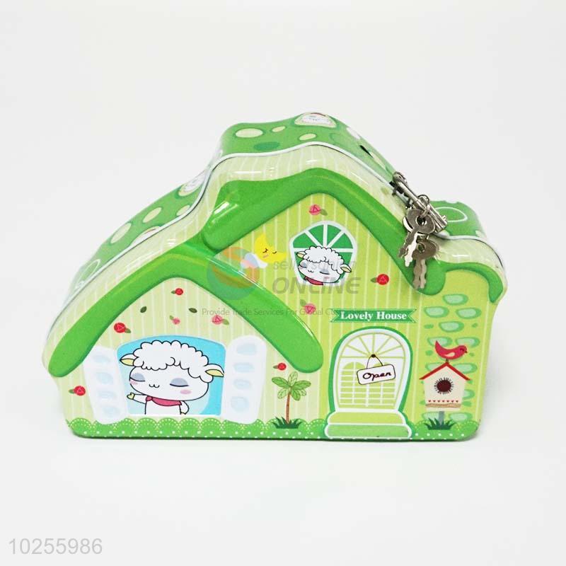 Good gift tinplate house shaped money box