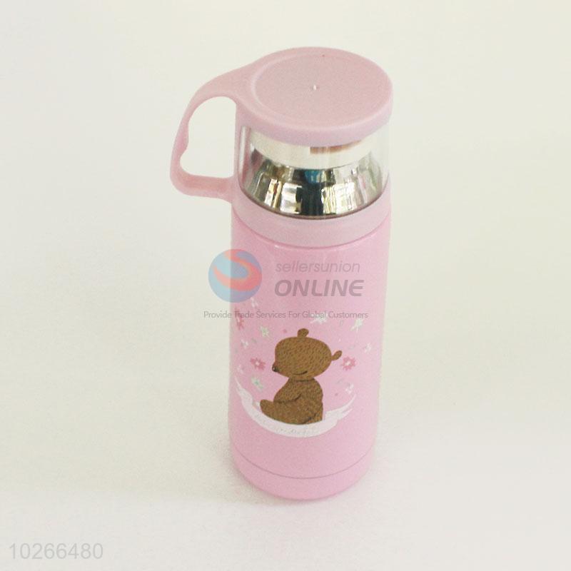 Pink Color Cartoon Bear Pattern 201 Stainless Steel Vacuum Cup Portable Water Bottles