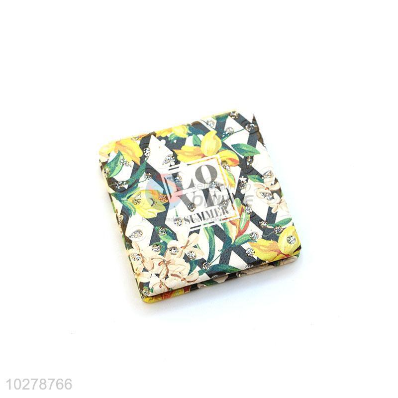 Colorful Flower Pattern Square Pocket Cosmetic Mirror for Sale