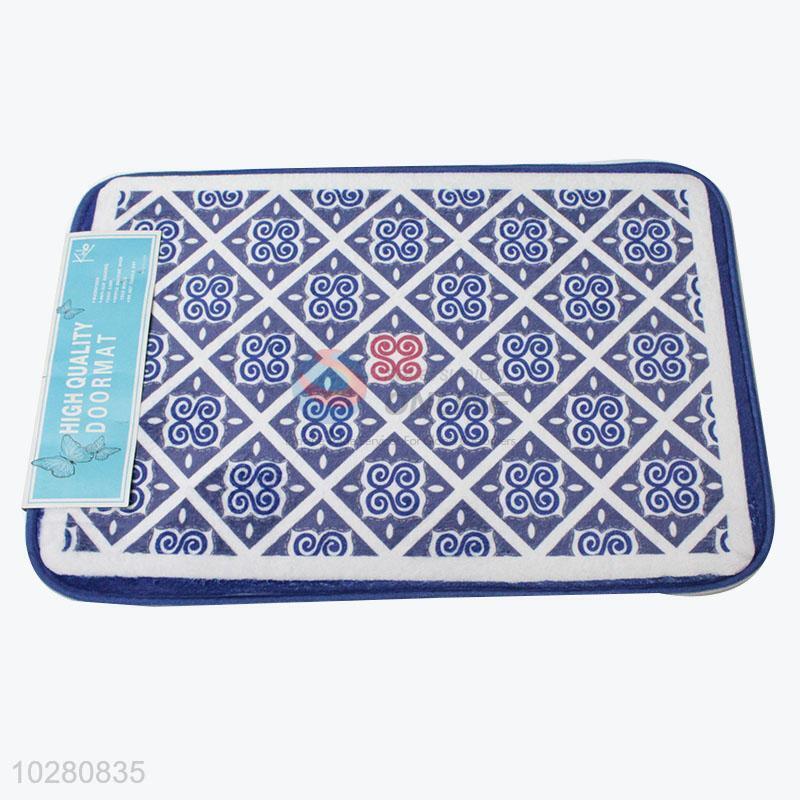 Latest Design Blue Flower Pattern Plastic Flannel Door Mat