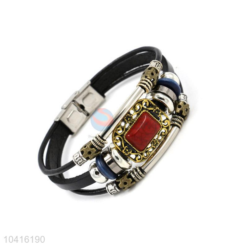 • China maker handmade retro multilayer leather beaded bracelet for men