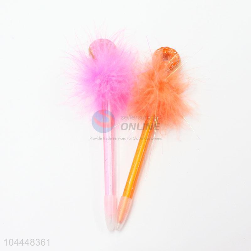 • New design kids plastic ball-point pen with colorful pom pom