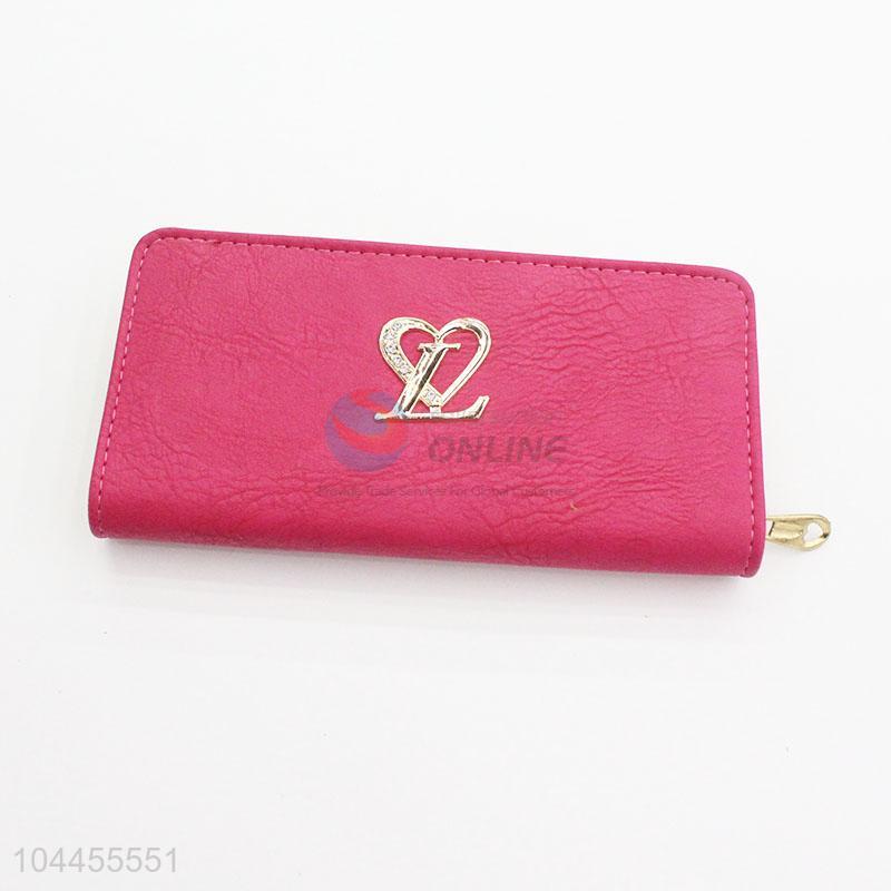 Heart Design Fashion Women Semi Pu Leather Wallet Long Purse