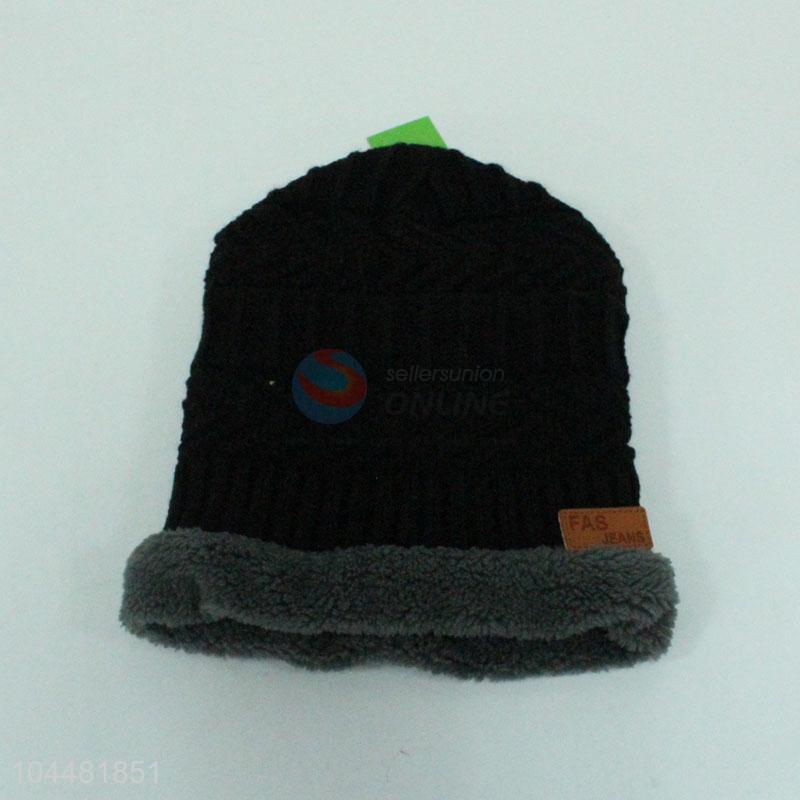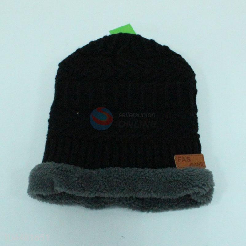• New arrival men winter fleece lined knitted beanie and neck warmer set