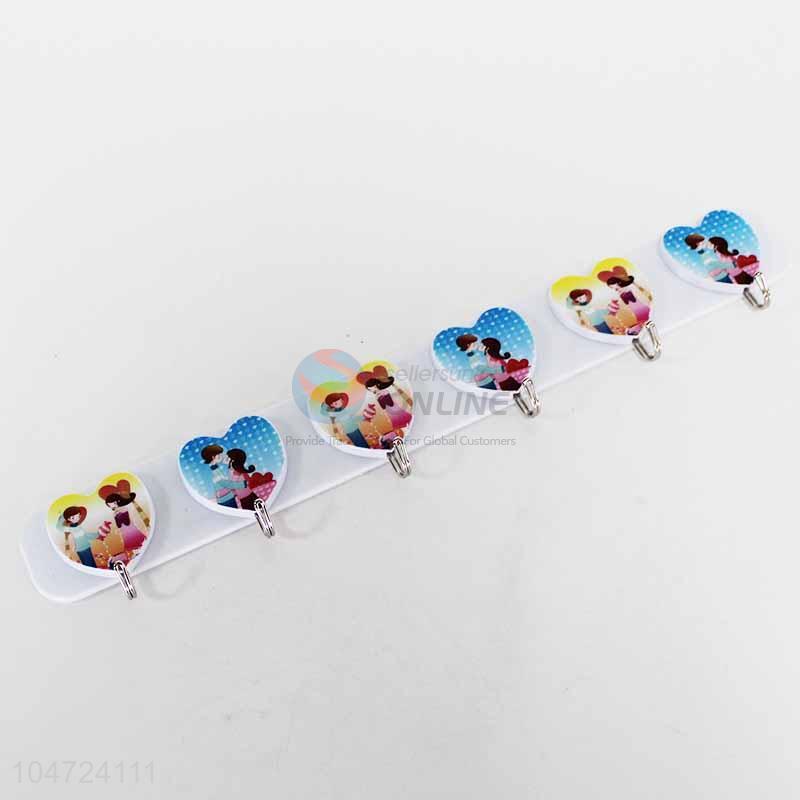 6 Heads Plastic Heart Shaped Sticky Hook Clothes Organizer Holder