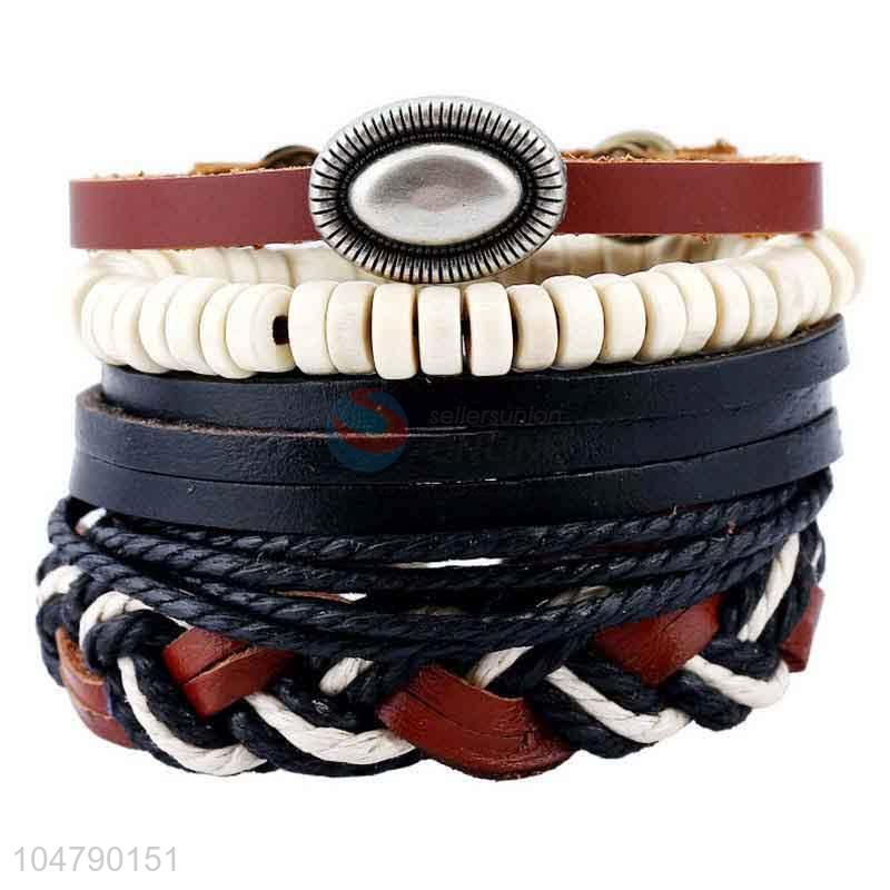 Customized wholesale cheap vintage braided leather bracelet set