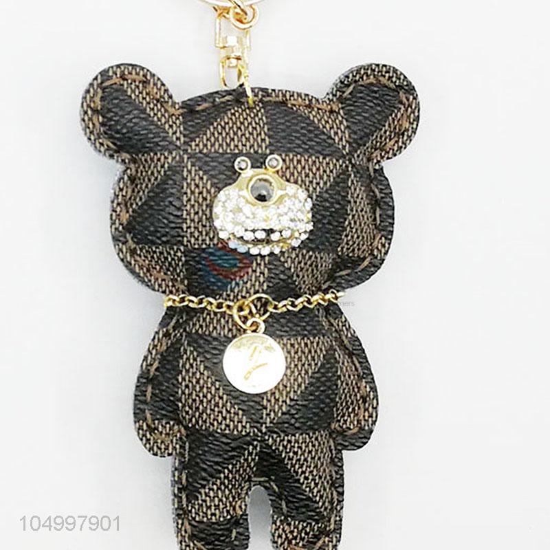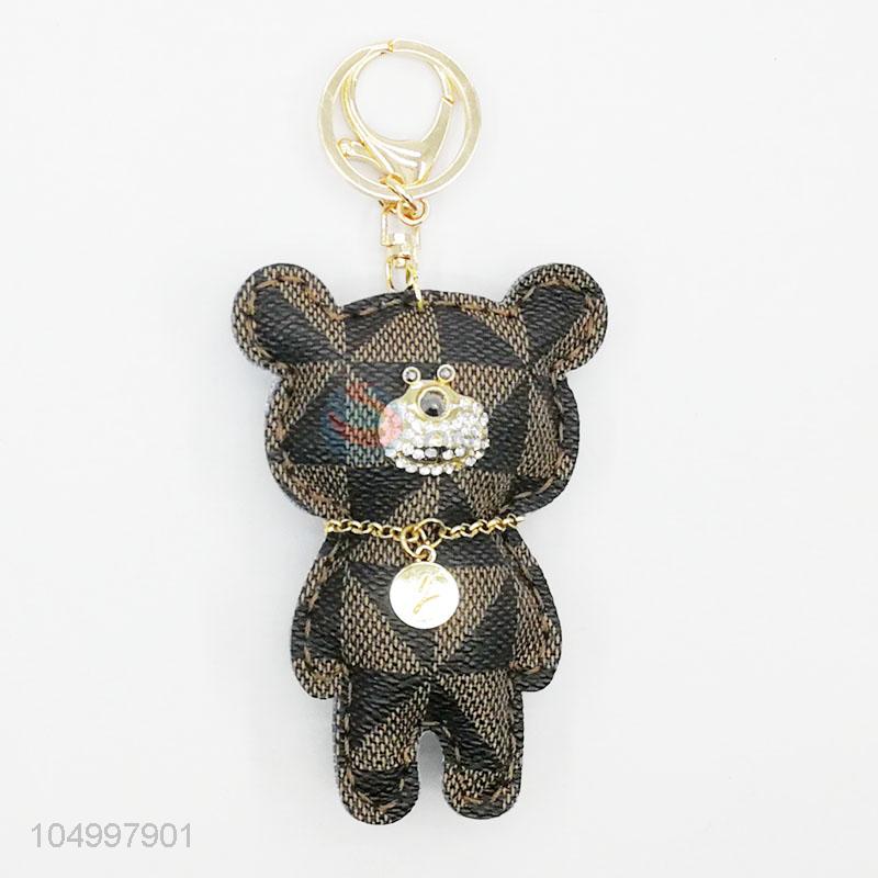 Direct Factory Cute Bear Leather Key Chain Women Keyring Bag Hang Toy