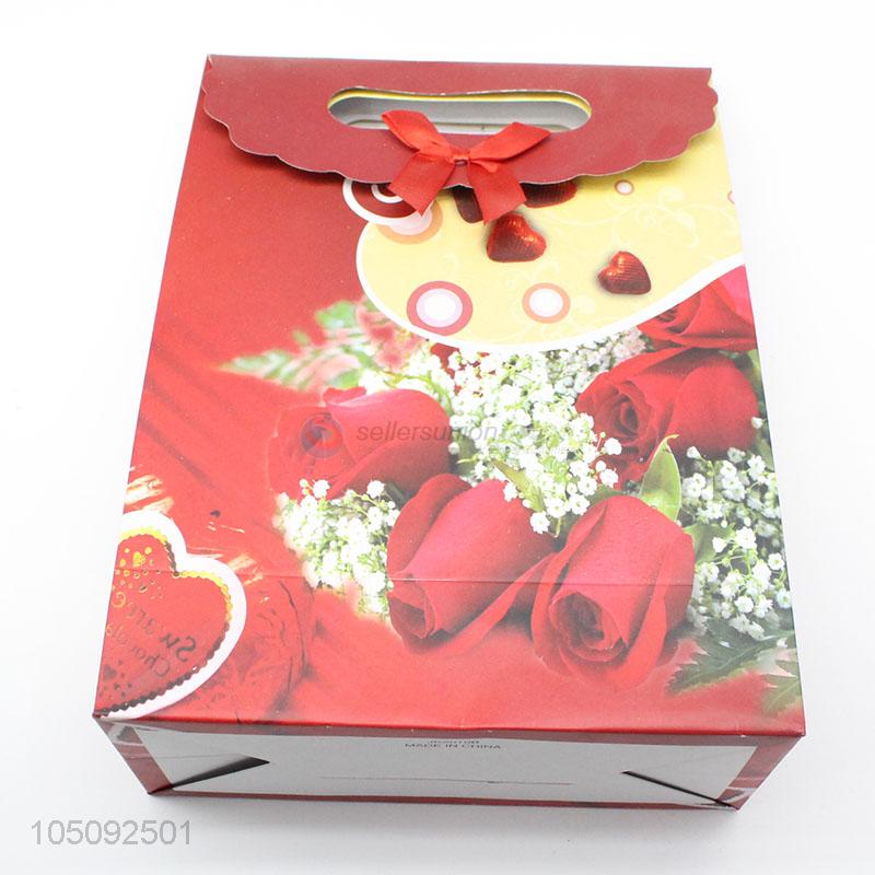 Promotional Birthday Paper Bag Exquisite Red Rose Pattern Gift Bag