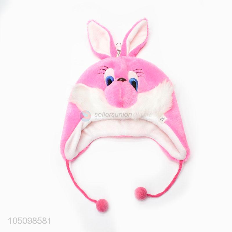 Cheap Promotional Cartoon Animal Rabbit Cute Fluffy Plush Winter Hat Cap