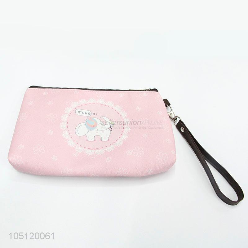 China Factory Mini Pink Color Cartoon Elephant Printed Coin Purse with Zipper