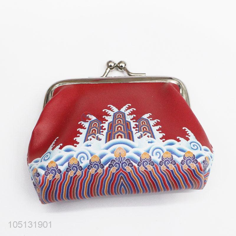 High Quality Red Color Custom Vintage PU Leather Coin Purse Wallet