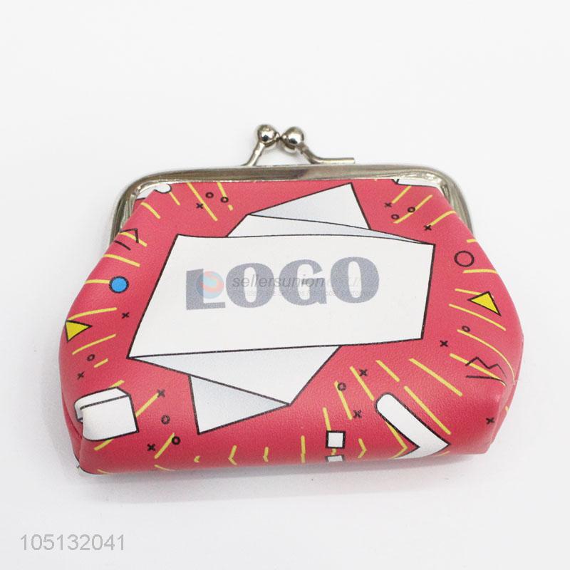High Quality Red Color Custom Printed PU Leather Coin Purse Hasp Pouch