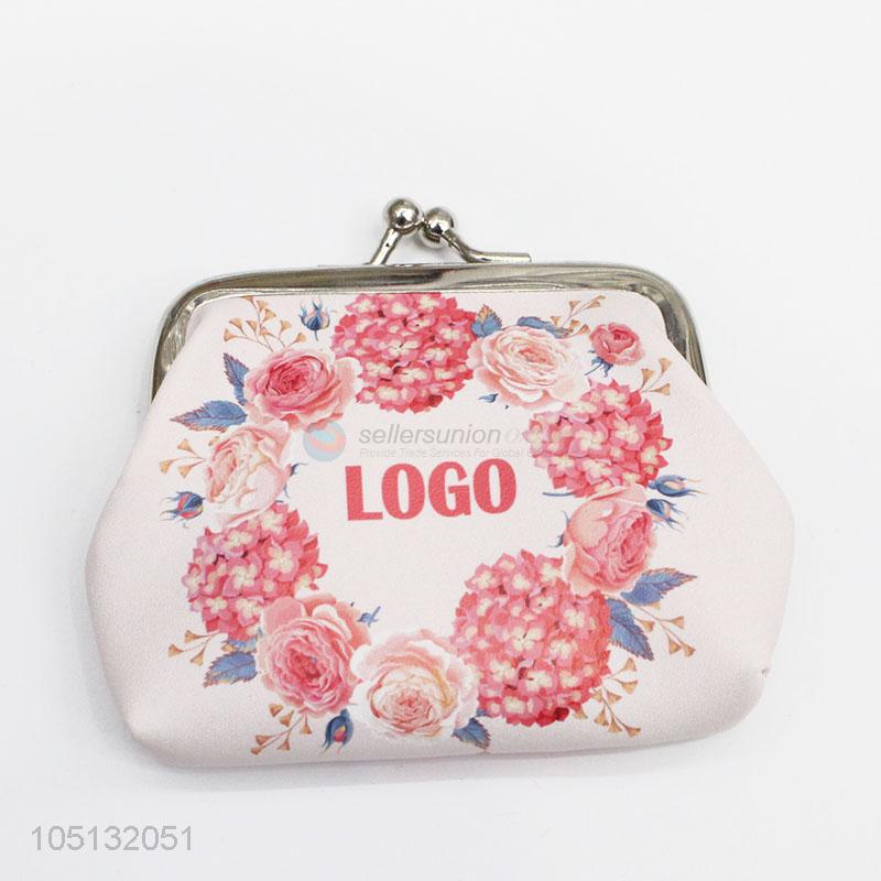 Best Selling Pink Flower Wreath Printed Kids Coin Purse Mini Money Bag