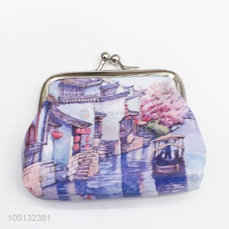 Mini Ancient Town Of Scenery Pattern PU Leather Coin Bag Small Pocket for Coin