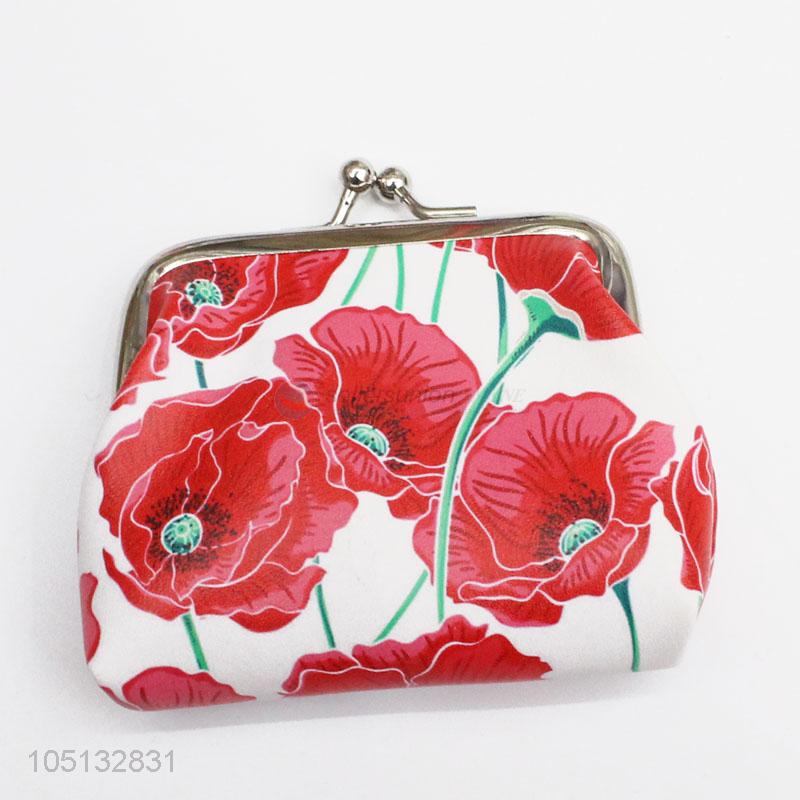 Wholesale Red Flower Printed PU Leather Coin Purse