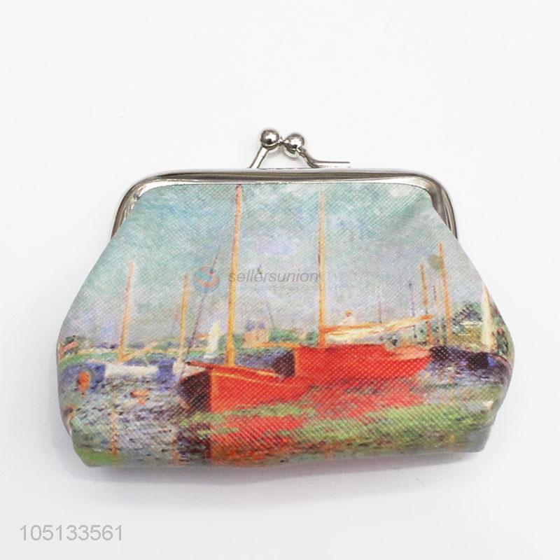 Cute Red Boat Printed PU Leather Coin Purse for Children
