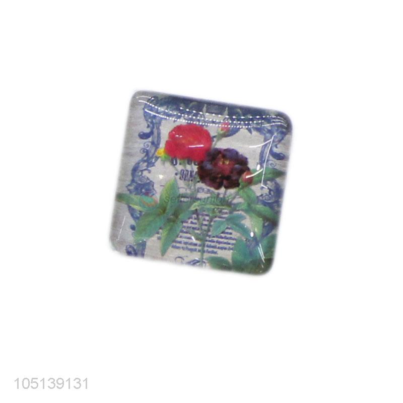 Factory sales square flower pattern glass crystal fridge magnet