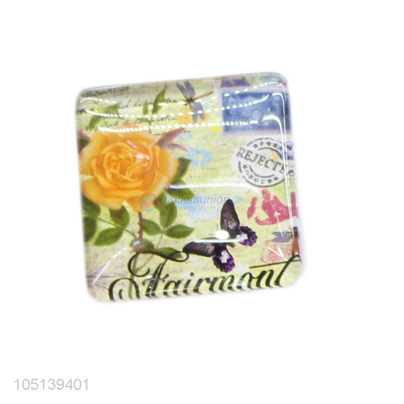 China wholesale delicate square flower pattern glass fridge magnet